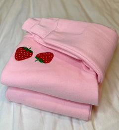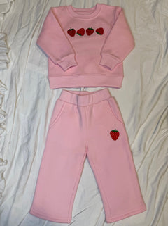 Top: A soft pink sweatshirt with four cheerful strawberries across the front β bright, fun, and berry cute!